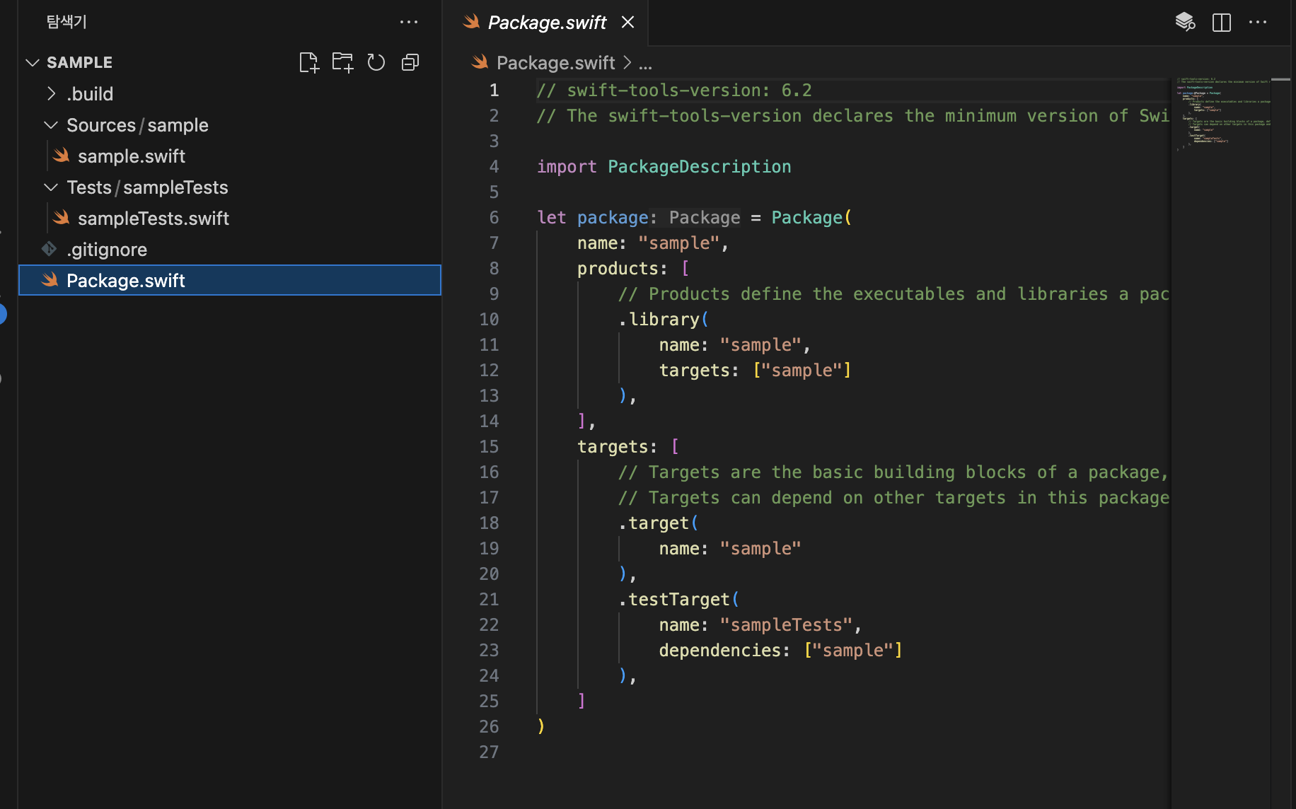 Package.swift 의 첫 라인은 버전을 표시하는데, 호환성을 위해 해당 라인을 필수로 포함해야 한다.